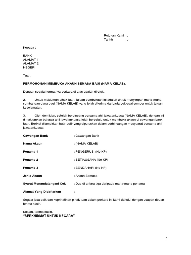 Contoh Surat Permohonan Membuka Akaun Kelab Pdf